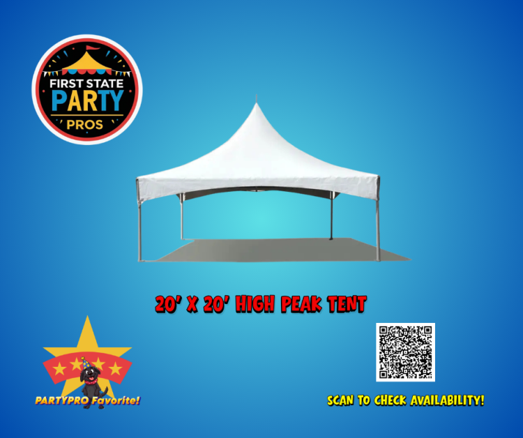 Looking for the perfect outdoor solution for your event? Our 20x20 High Peak Party Tent is the ideal choice for any occasion! With its elegant, high-peak design, this tent not only provides ample space but also creates an impressive visual centerpiece for your gathering. Whether you're hosting a wedding, corporate event, festival, or family reunion, this tent offers 400 square feet of coverage, comfortably accommodating up to 40-50 guests.